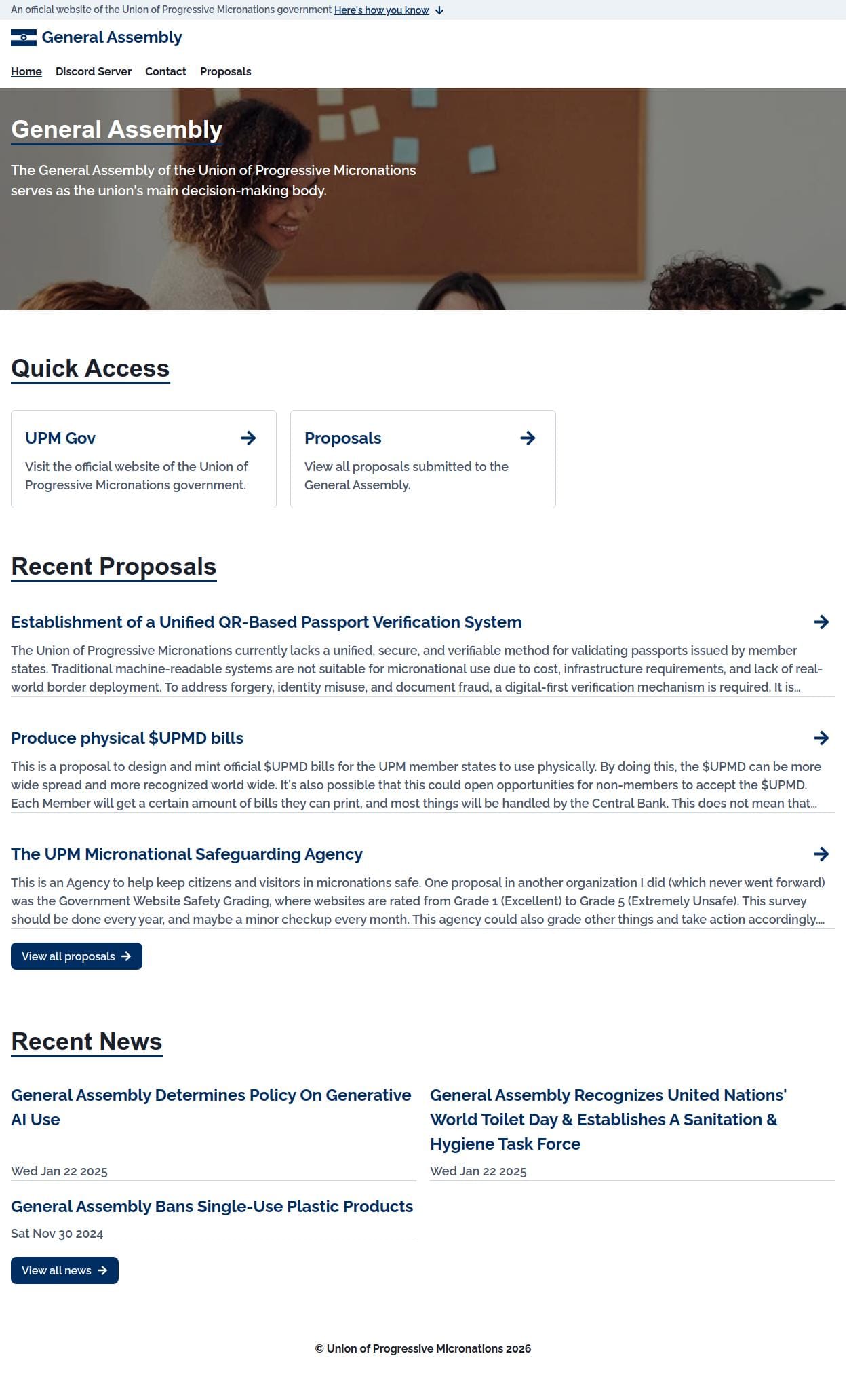 As part of ongoing efforts to improve access to information, the Union of Progressive Micronations has launched minor yet essential updates to the General Assembly’s website.
